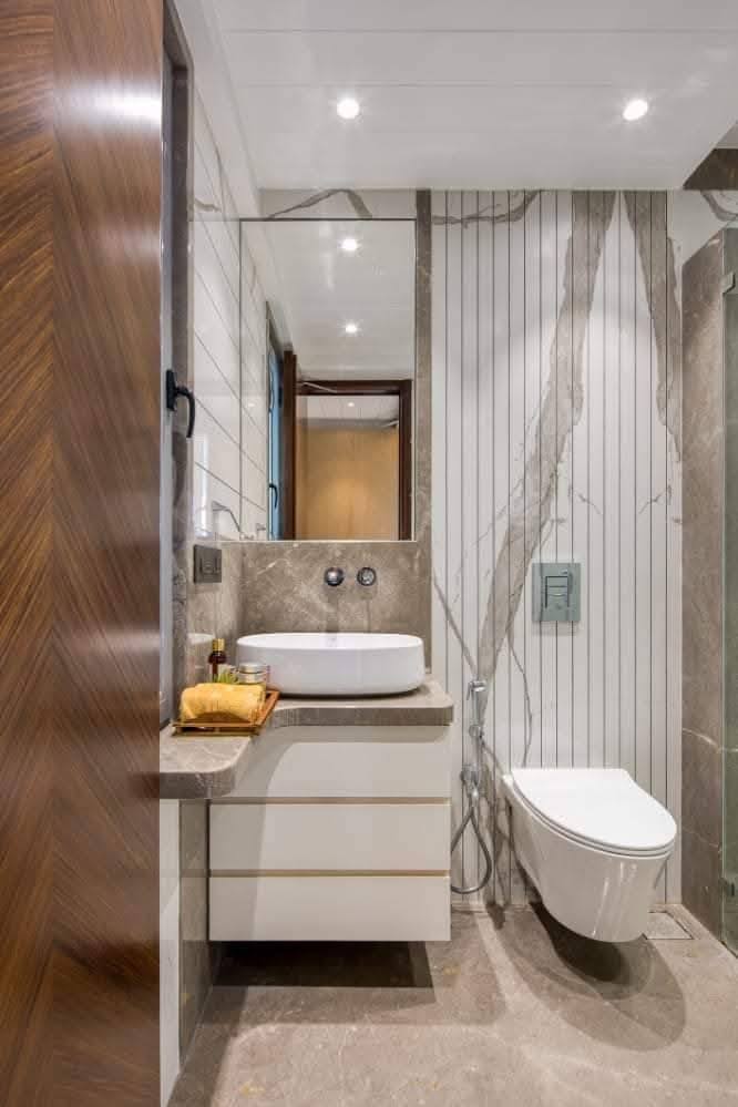The bathroom design focuses on simplicity, hygiene, and comfort. Clean finishes, quality fittings, and a well-planned layout ensure easy maintenance and a refreshing experience. The design balances functionality with a neat, modern look.