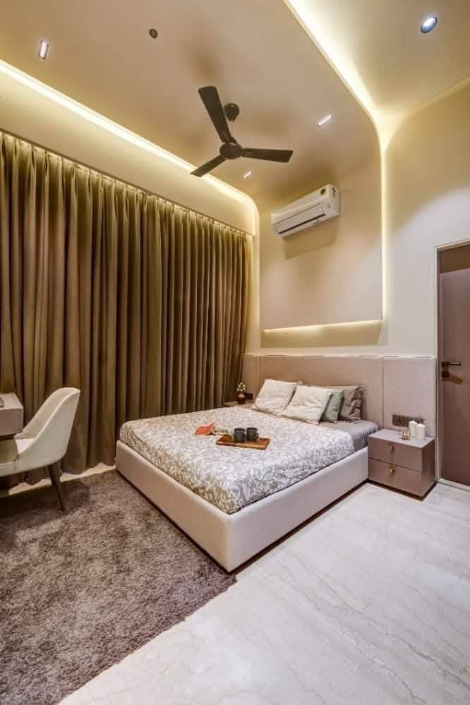 The master bedroom is designed as a calm and relaxing personal space. Soft color tones, comfortable furniture, and smart storage solutions create a clutter-free and soothing environment. The layout ensures easy movement and a cozy feel, making it the perfect place to unwind after a long day.